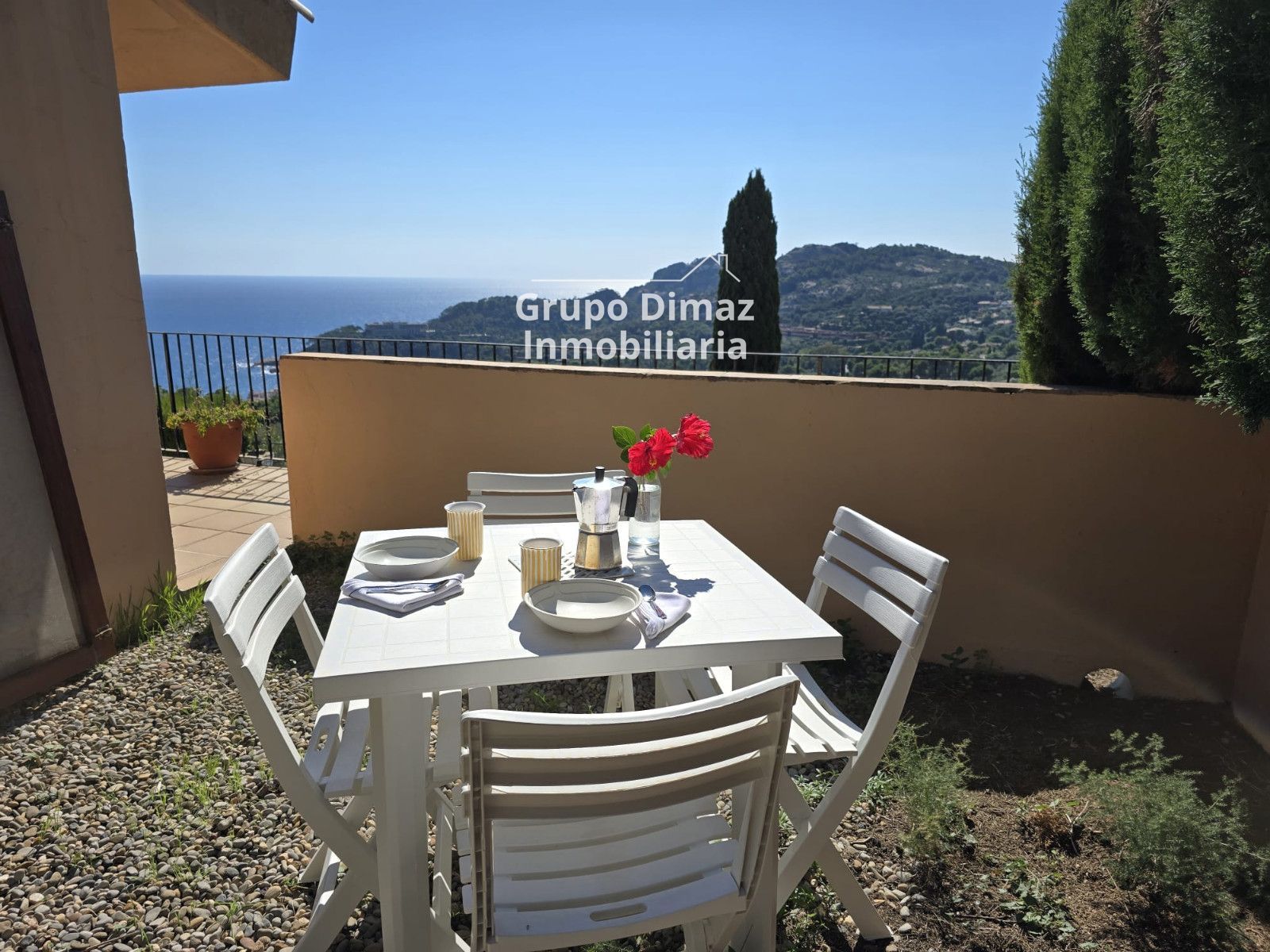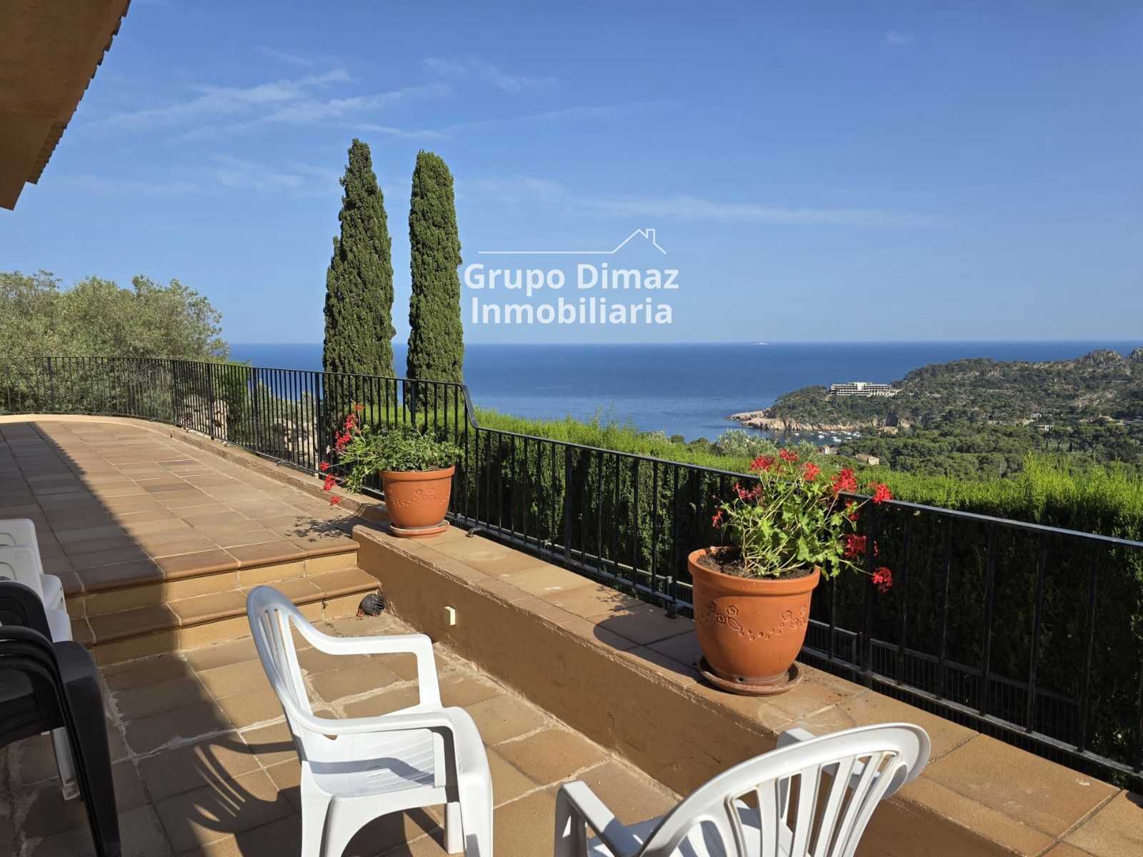 Das Haus erstreckt sich über drei Etagen auf einem Grundstück von 470 m² und besticht durch seine hervorragende Südausrichtung, die den ganzen Tag über für optimale Lichtverhältnisse sorgt und spektakuläre Sonnenauf- und -untergänge über dem Meer ermöglicht.