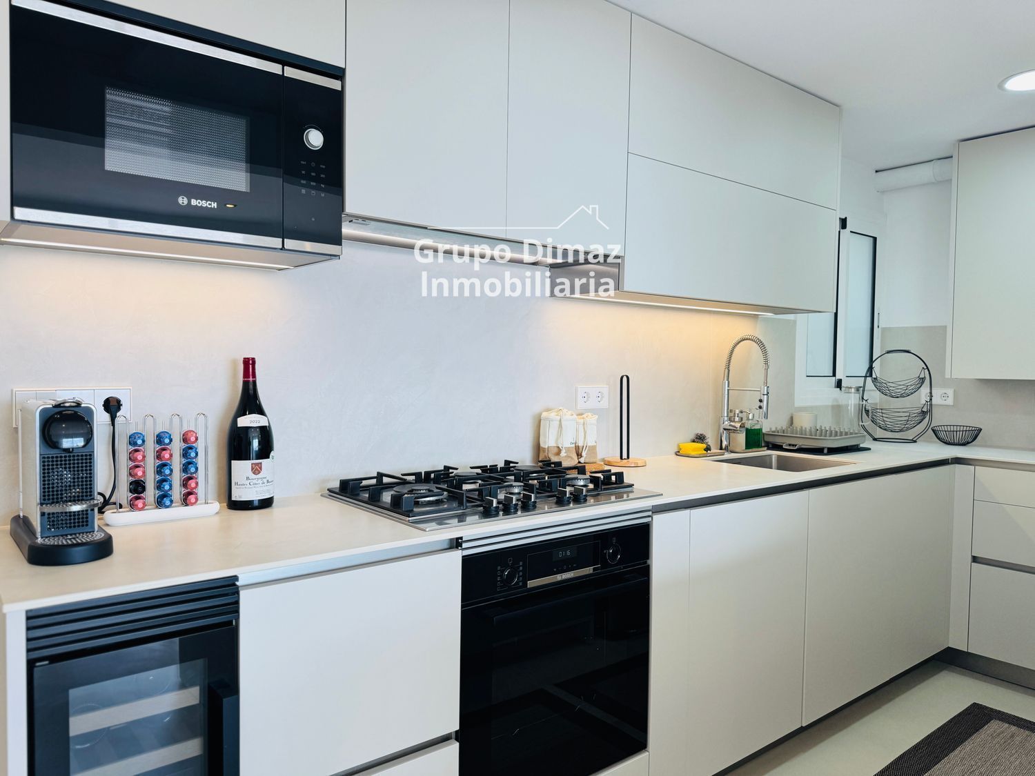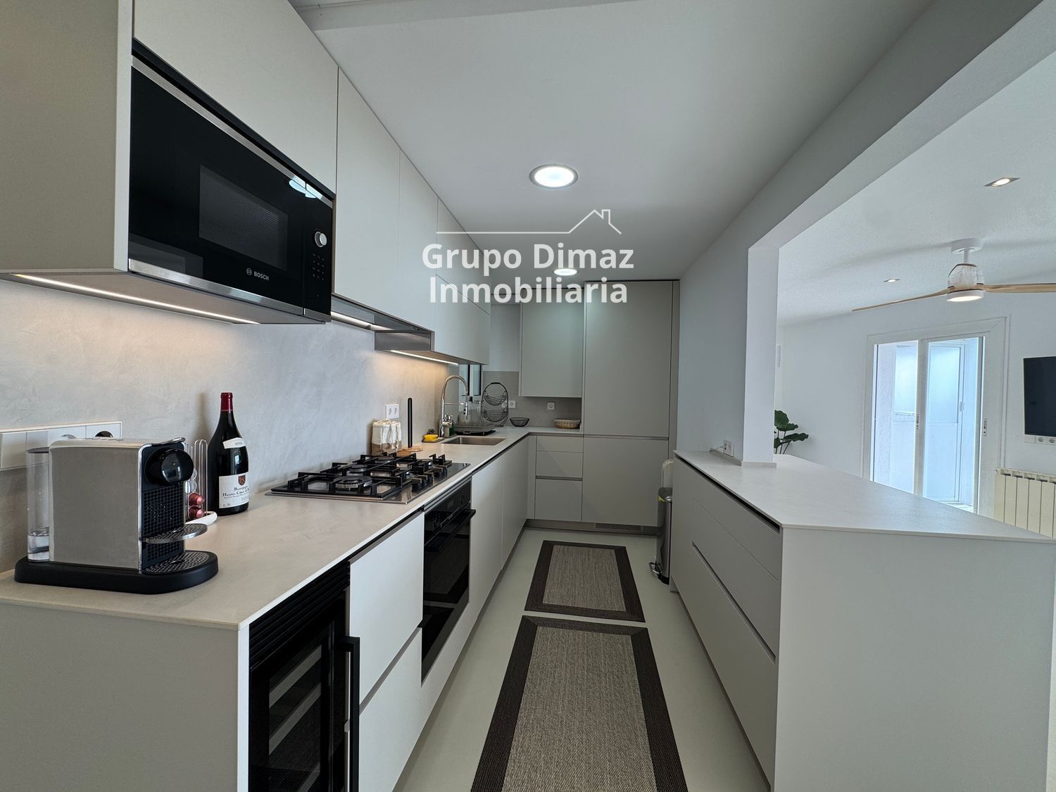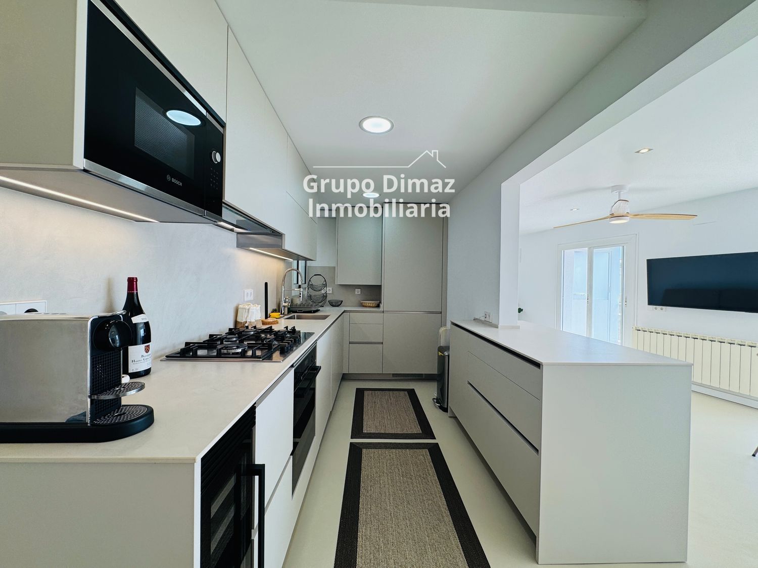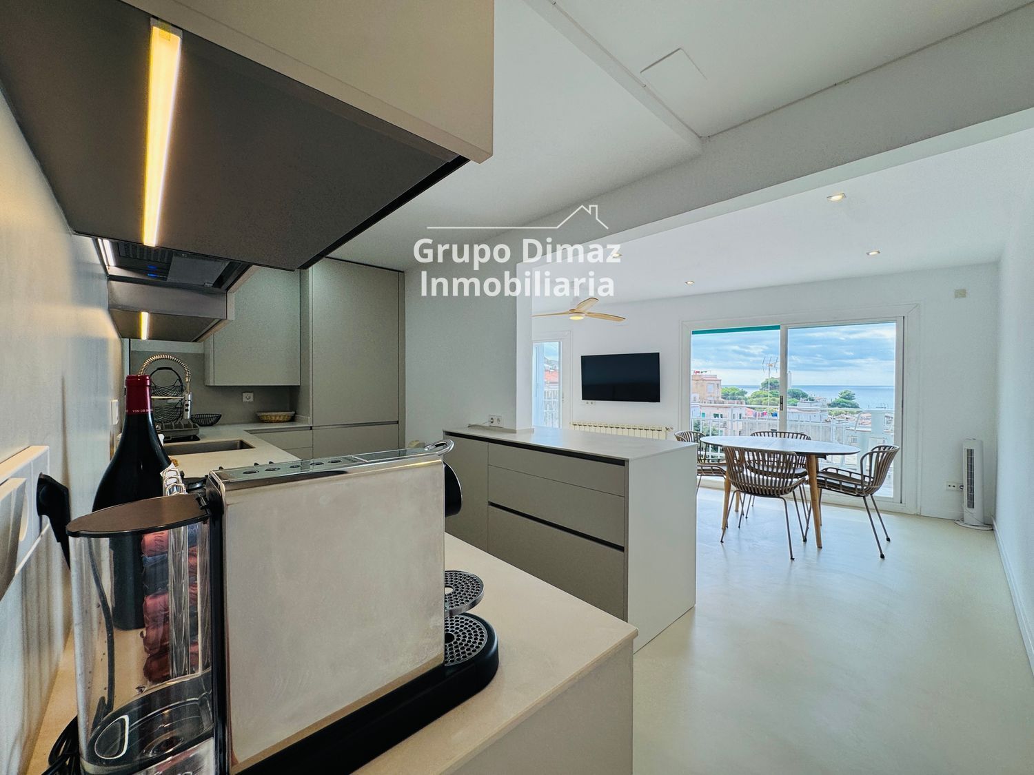 Una de las características más destacadas es su cocina americana, abierta al salón, que ofrece una experiencia moderna y conectada, ideal para disfrutar de momentos en familia o con amigos. El espacio principal destaca por su luminosidad y por las espectaculares vistas al mar, un atractivo muy valorado en el alquiler de pisos en Sant Pol de Mar, donde la tranquilidad y la belleza natural son protagonistas.