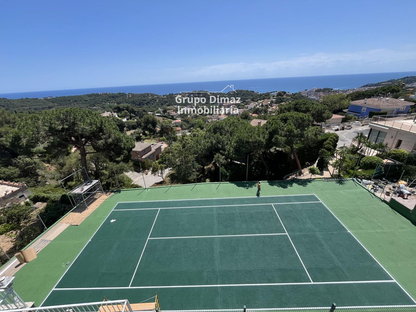 Piscina exterior y pista de tenis