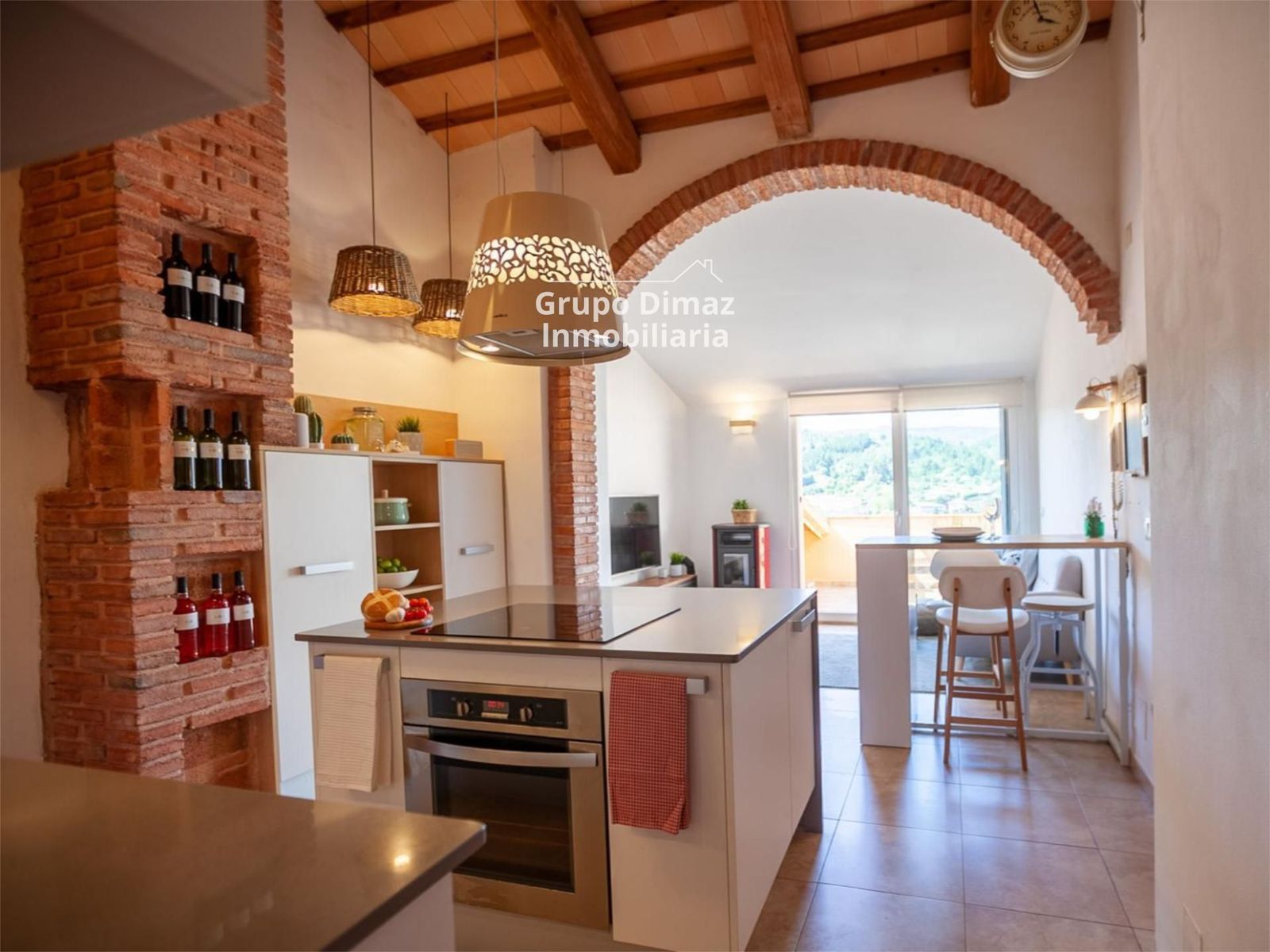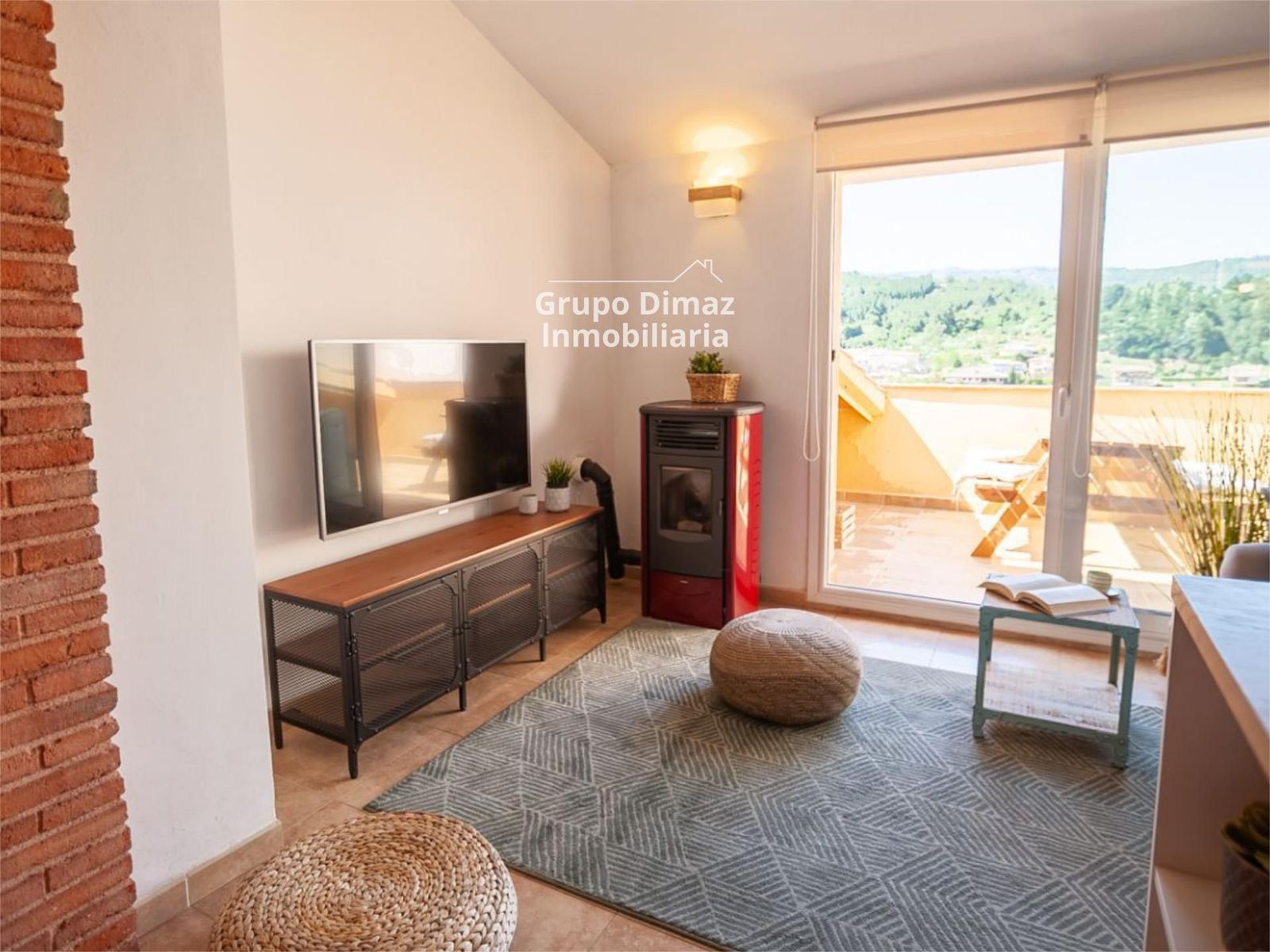 Terraza amplia con vistas impresionantes a la montaña y al pueblo.